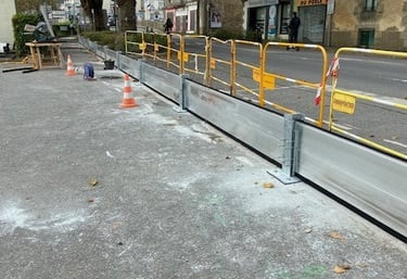 Barrières adaptées pour sécuriser routes et voies publiques contre l’eau.